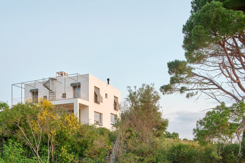 Esta vivienda en El Port de la Selva (Girona) tiene un nombre descriptivo, la Casa Sobrevent está pensada para proteger a sus inquilinos de lo incómodo, la Tramontana, el fuerte viento del norte, y, a la vez, para conducirles hacia lo mejor del lugar: las vistas sobre la bahía. Así, la vivienda es a la vez cobijo y pedestal. Y para hacer convivir esos contrarios despliega dos escaleras, una central y otra exterior, que conectan los espacios y multiplican los recorridos. La escalera exterior asciende desde el porche hasta la cubierta para acercarse a las vistas náuticas. Allí, una pérgola, confiada a plantas trepadoras de hoja caduca, coronará la casa, la naturalizará, la camuflará y protegerá así el disfrute de los habitantes del exceso de sol.JOSE HEVIA BLACHLa escalera interior, en cambio, continúa el suelo —y la chimenea— de terracota. Tiene un carácter recogido y sin embargo escultórico. Es la única curva en una vivienda loosiana de geometría pura en un volumen compacto que habla a la vez de modernidad y de tradición. ¿Cómo lo hace? Entendiendo que no son conceptos contrapuestos. Escalera interior de la vivienda.JOSE HEVIA BLACHDe un lado, las gruesas paredes cerámicas —acabadas en mortero de cal— aluden a una tradición milenaria y, por lo tanto, fuera del tiempo. ¿Cómo actualizan los arquitectos entonces una tradición milenaria? Mas allá de con la tecnología —oculta— y con los materiales —más eficaces—, la casa trabaja los umbrales, el espacio intermedio, y —sobre todo— establece varias vías de comunicación vertical y horizontal. El interior de la vivienda actualiza la casa mediterránea.JOSE HEVIA BLACHEn esta vivienda —de cuatro habitaciones de tamaño similar— no hay jerarquía. Y sí comunicación. Curiosamente, la comunicación vertical doble, con una escalera interior y otra exterior, no sacrifica la intimidad. Ni, casi, el espacio que, en cambio, parece multiplicar.